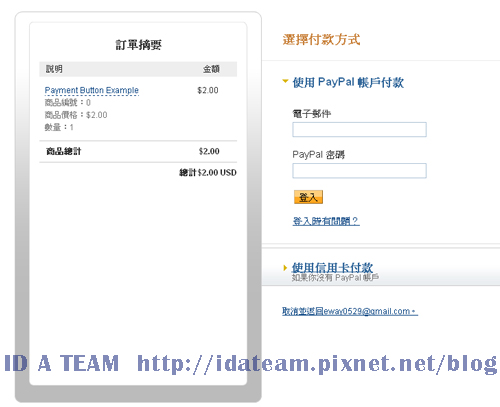 如果設定成功, 你會看到你的PAYPAL資訊. 這只是要確定別人付款的時候是付款給你. 然後就可以離開這個網頁.