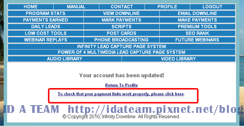 你會看到 "YOUR ACCOUNT HAS BEEN UPDATED"